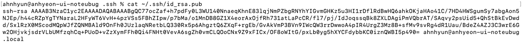 - .ssh 폴더에서 .pub의 확장자를 가진 공개키 확인 및 내용 복사