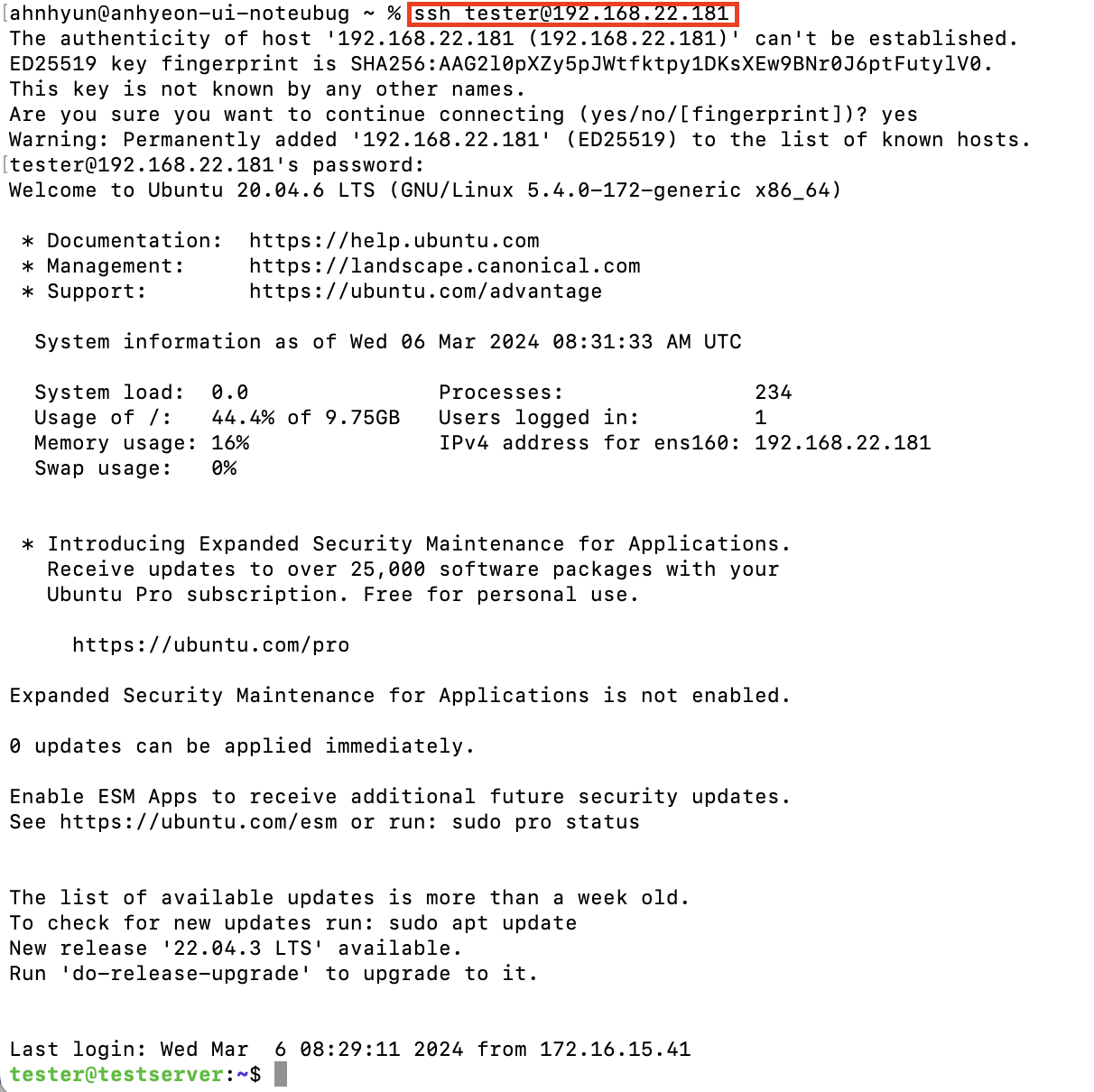 3. SSH 설정 및 접속(SSH에 대한 자세한 설명은 [Study] SSH 참고)