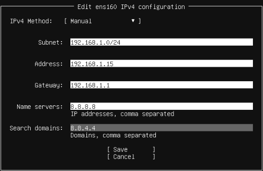 - 수동 설정(Maunal) 선택 → 사용할 IP, 서브넷 마스크, 게이트웨이 주소 입력