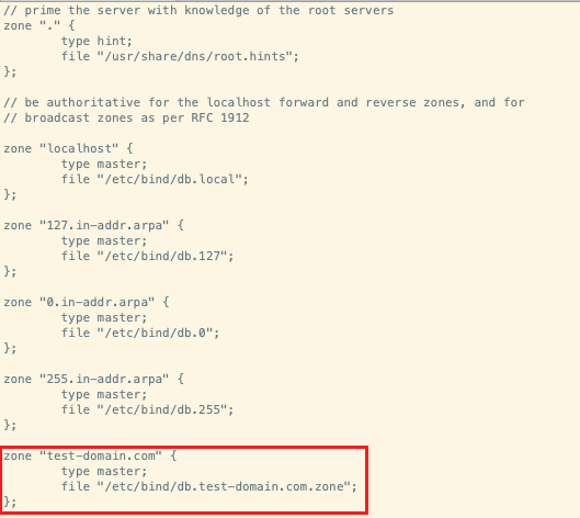 file "/etc/bind/db.(생성할 도메인 이름).com.zone";
