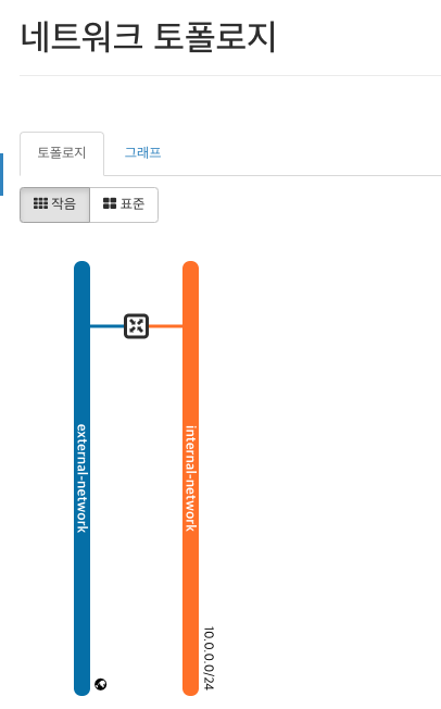 - 외부 네트워크와 라우터 생성 후 토폴로지