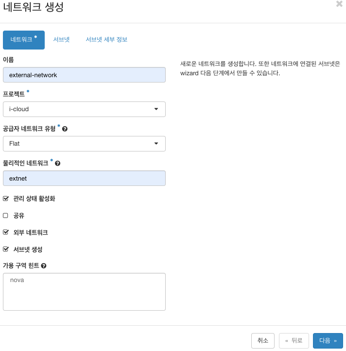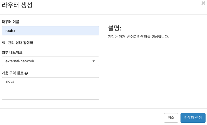 로그아웃 후, icloud-1로 로그인→ 네트워크 → 라우터 생성