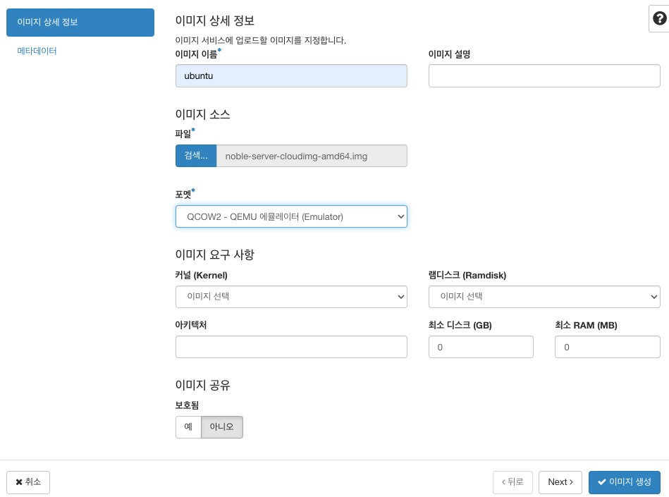- https://docs.openstack.org/image-guide/obtain-images.html#ubuntu 에서 noble-server-cloudimg-amd64.img 다운로드