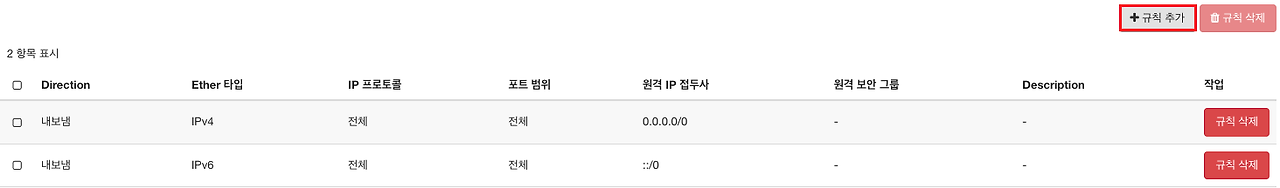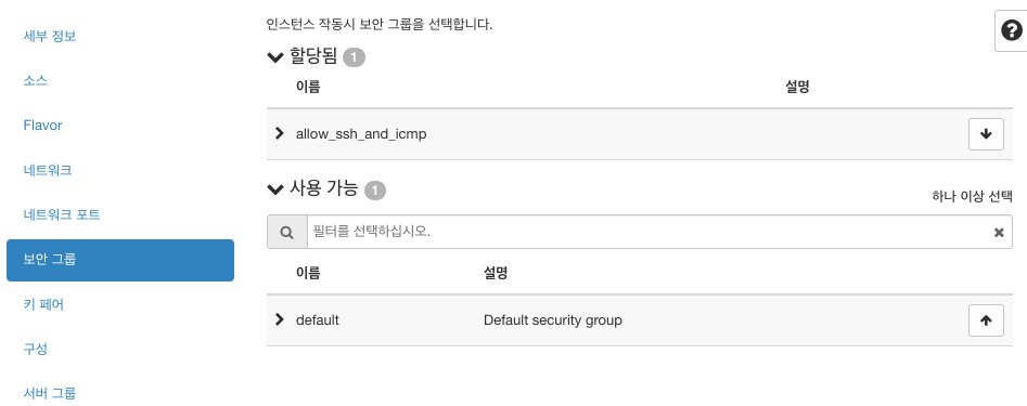 - 보안 그룹 이름 : allow_ssh_and_icmp