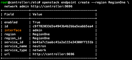 openstack endpoint create --region RegionOne \ network admin http://controller:9696