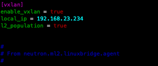 [vxlan] enable_vxlan = true local_ip =컨트롤러 노드의 IP l2_population = true